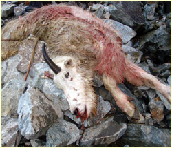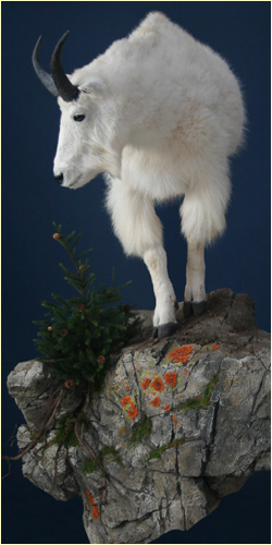It is not uncommon for Mountain Goats to fall from great heights after being shot. Many hunters prefer to harvest adult males, or Billies, because Billies make more impressive trophies, and it is more ecologically sustainable than hunting Nannies. But Billies tend to prefer steeper and higher slopes, which greatly increase the chances of a long fall. This mountain goat fell 1,300 feet onto jagged boulders after being shot. As one might expect the resulting damage was extensive. Most taxidermy studios would deem such a specimen unsalvageable, but the artists at Wildlife Preservations like a challenge. It is impossible to tell that this magnificent mount was created from such a compromised specimen. We think the before and after photos speak for themselves.