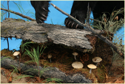 The creation of a convincing habitat depends greatly on the accurate depiction of a location, the season and the time of day in which the scene occurs. Each handcrafted structure is built following extensive research. When accessible, the staff of Wildlife Preservations will travel to the field to photograph and sketch the appropriate environment. If necessary, photo reference is used to better understand out-of-area locations. Specimens are collected or created to be used as reference and as elements in the finished piece.