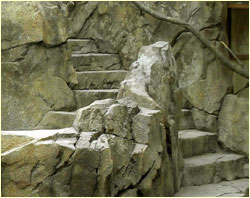 Contractor Tim Sheldon, of Waterfalls of Wisconsin, Inc., hired Michael Vernelson, Wildlife Preservation’s in-house artist, and Spencer Dean, to produce scenic rockwork for the project. The rocks began as articulated steel armatures covered in wire. Strong layers of shotcrete were applied directly over the mesh to strengthen the structures. A finer concrete blend was carefully sculpted on top of the first layer, and then painted to replicate the look of natural rocks in the surrounding Connecticut countryside. Finally, the rock work was sealed to protect the structure from water, making it durable and virtually maintenance free.