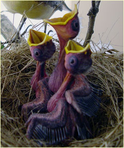 The museum features several peephole dioramas, all smaller than a shoebox. These tiny dioramas demand the utmost realism. Wildlife Preservations provided an eastern cottontail for a peephole diorama of a rabbit nest, and models of red tanager chicks for a model of a tanager's nest. A third diorama portrays a red fox pouncing on a vole amongst sand dunes.