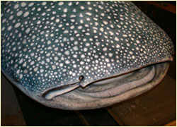 Over the course of a year, the original skin of the whale shark was cleaned and stabilized before being reapplied to the mannequin. The skin was then sealed with a primer to protect it from mold. Finally, the entire specimen was painted to restore the specimen to living color.